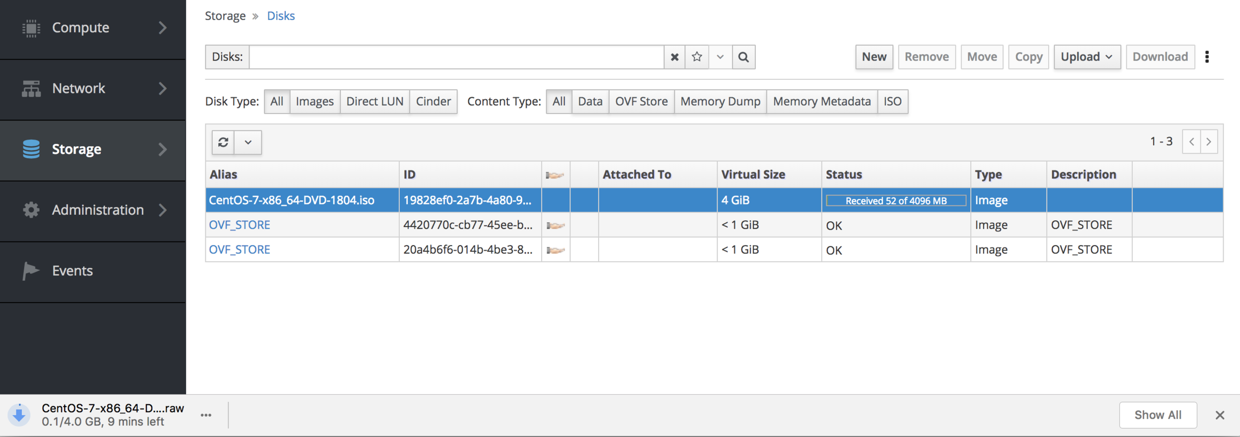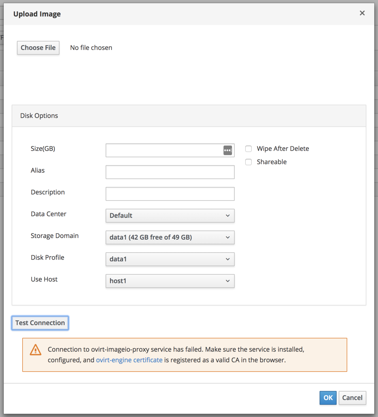 A service that provides direct access to oVirt disks and snapshots using HTTPS protocol. Together with ovirt-imageio-proxy, it allows uploading/downloading disks directly into/from an oVirt disk (also, supporting random I/O).